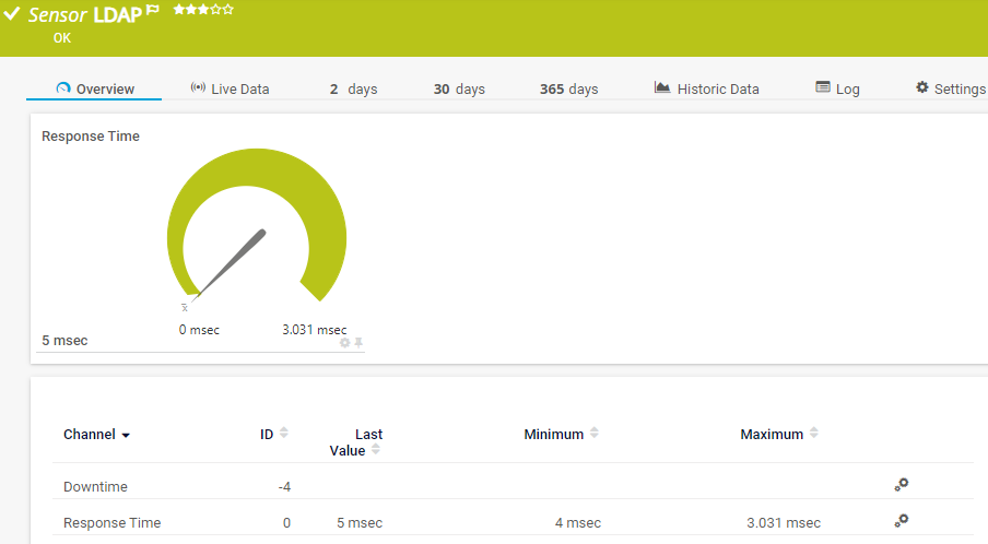 The LDAP sensor monitors directory services via the Lightweight Directory Access Protocol (LDAP). It connects to the server by trying a "bind".